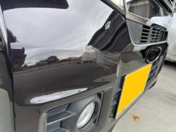 ・・・フロントバンパーがガスッっと削られて帰ってきておりました。